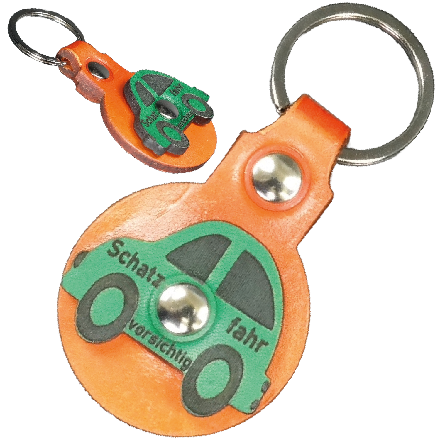 Schlüsselanhänger Leder - Auto (orange grün)