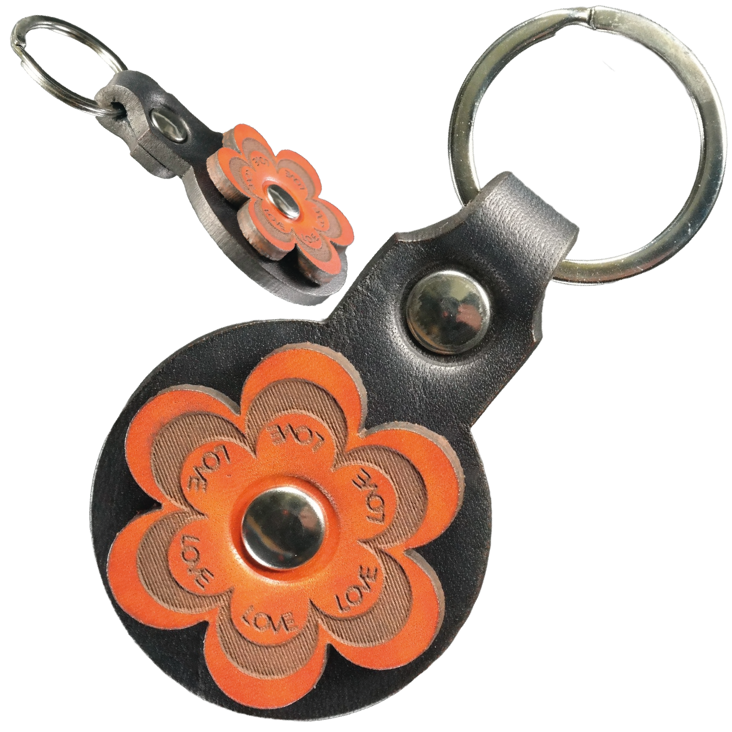 Schlüsselanhänger Leder - Blume (schwarz orange)