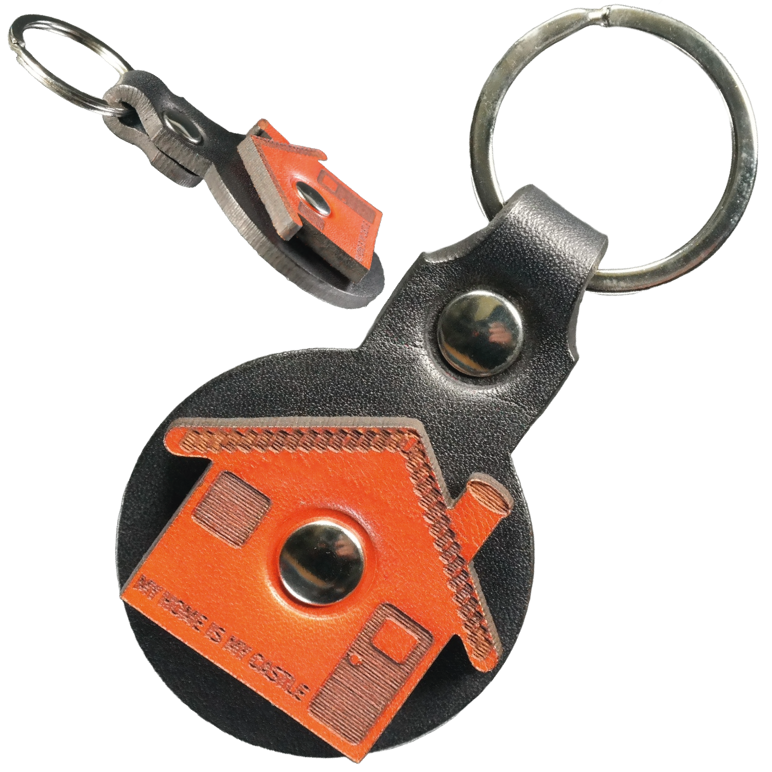 Schlüsselanhänger Leder - Haus (schwarz orange)