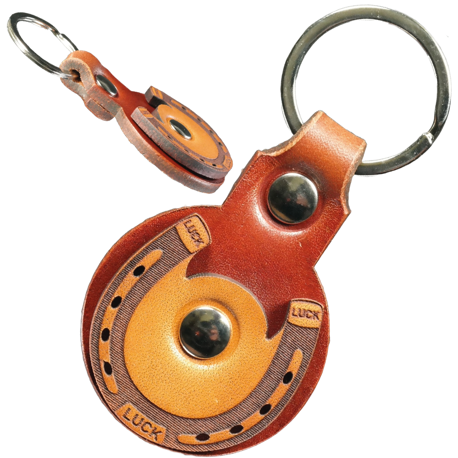 Schlüsselanhänger Leder - Hufeisen (braun beige)