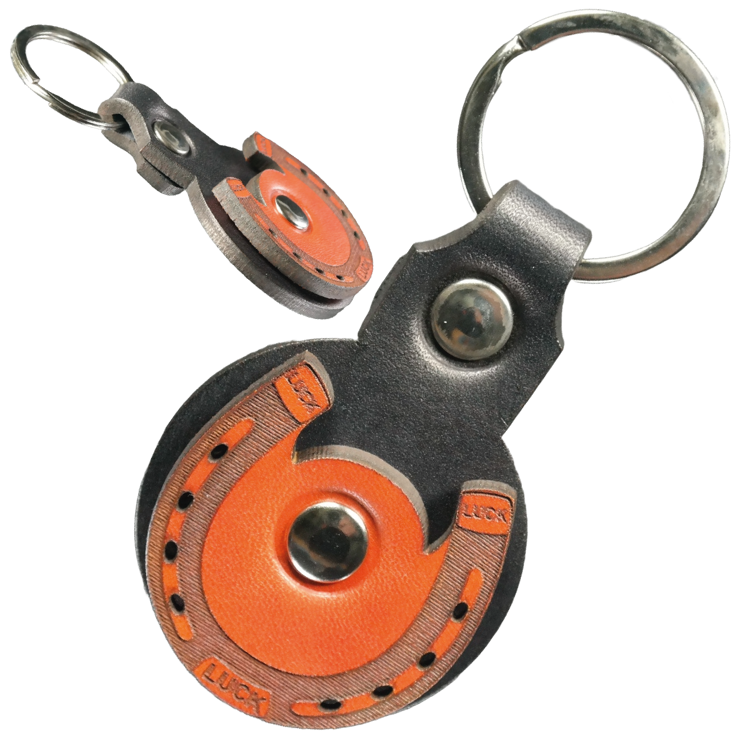 Schlüsselanhänger Leder - Hufeisen (schwarz orange)