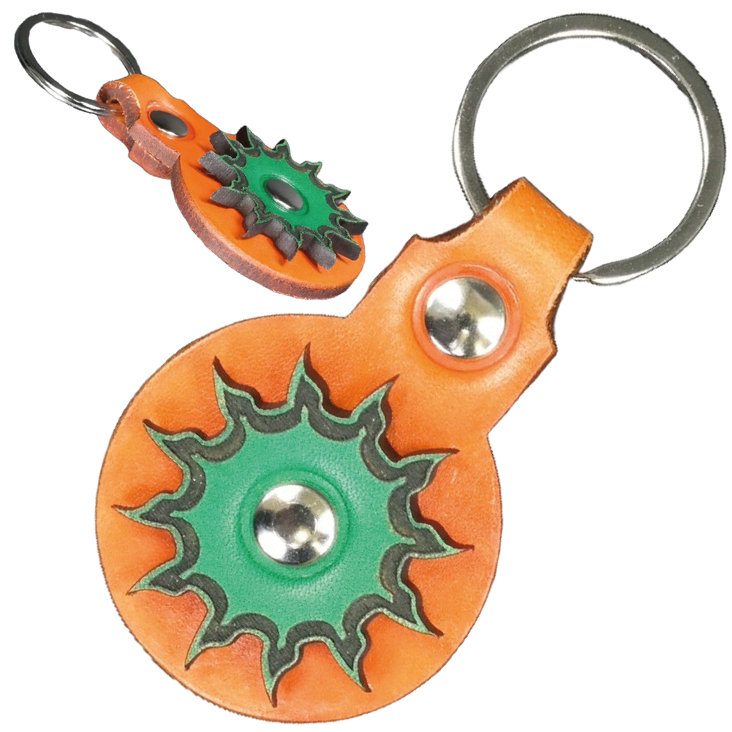 Schlüsselanhänger Leder - Sonne (orange grün)